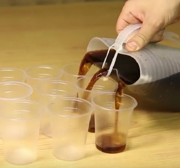 - Esta jarra de plástico blando es cómoda de usar en casa y al aire libre. Y para que tus amigos no tengan que esperar mucho tiempo por su porción de bebida refrescante, para ello utiliza el siguiente truco. En el mango de la jarra, fija un aro de plástico y engánchalo sobre el pico de la jarra. Sólo te queda poner copas en tres filas: 10 segundos – y la bebida no hará esperar a nadie.