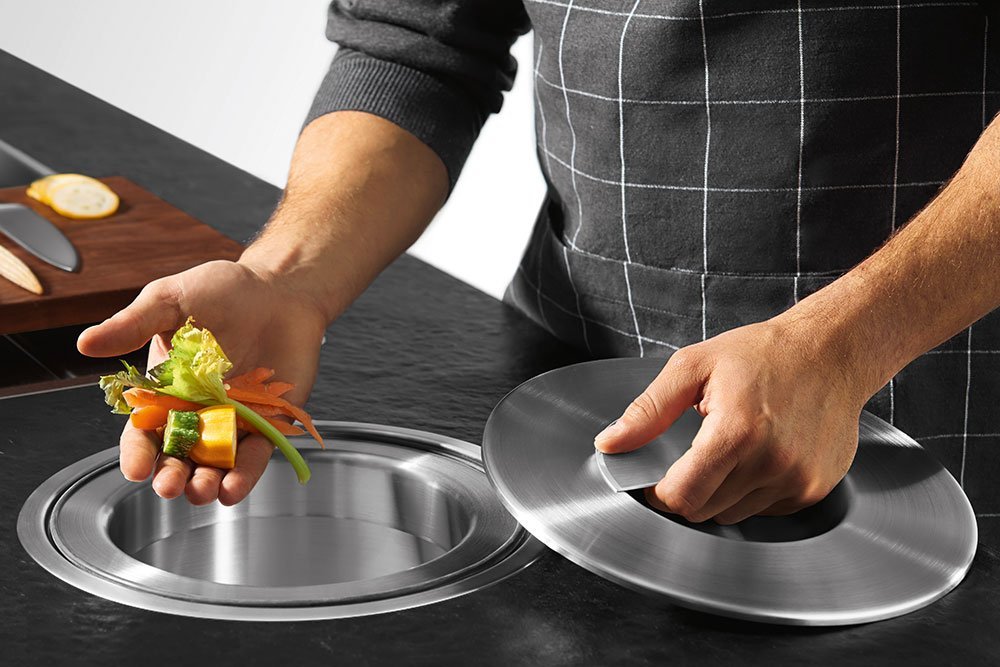 Muchos fabricantes de cocinas tienen encimeras con reservorios especiales en los que puedes echar fácilmente los desperdicios y migas sin manchar el piso.