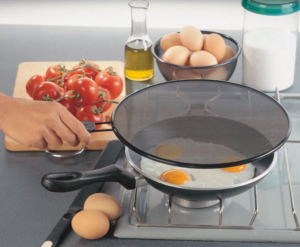 Si tu apartamento no está equipado con una campana extractora potente y tu método de cocción favorito es freír, entonces sin duda tus gabinetes y el techo estarán amenazados por una capa de grasa, de la que será muy difícil deshacerse. Para evitar que esto suceda, cubre la olla o sartén con una cubierta protectora especial.