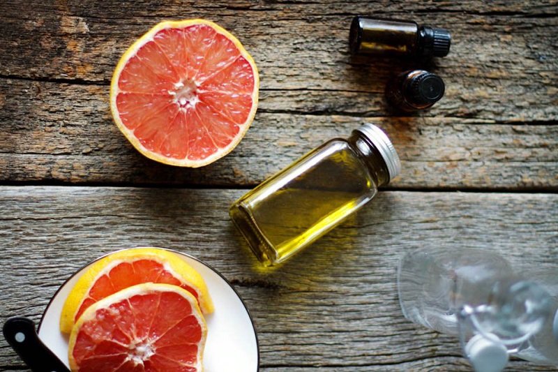 El aceite esencial de toronja ayuda a la piel grasa. Este aceite cierra los poros, suaviza los desperfectos y hace que la piel luzca más atractiva y fresca.