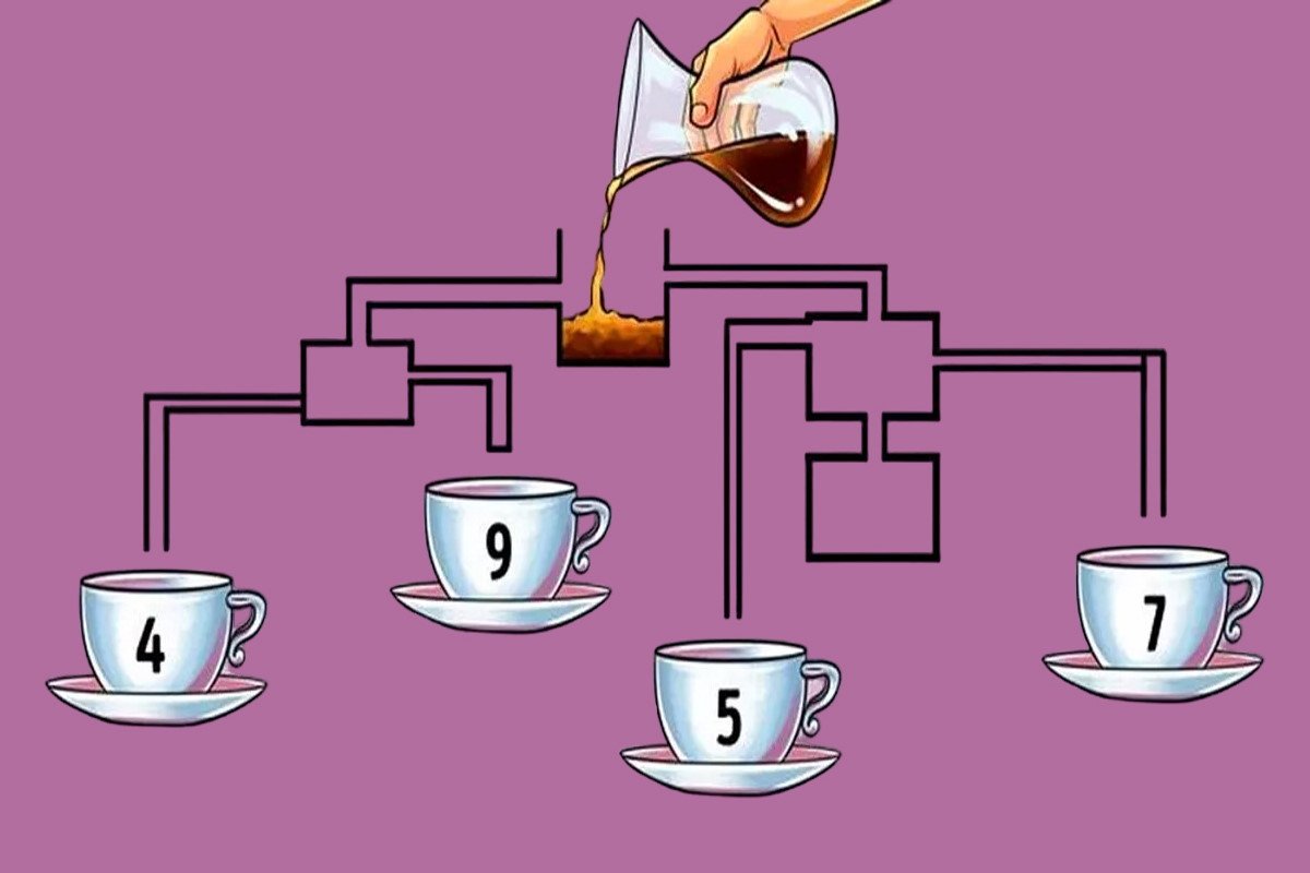 - En el segundo acertijo, tienes que averiguar en qué taza va a caer primero el delicioso café. Aunque hay cuatro tazas a la vez, la bebida no fluirá por las tuberías hacia todas ellas. ¿Podrás resolver este rompecabezas lo bastante rápido?