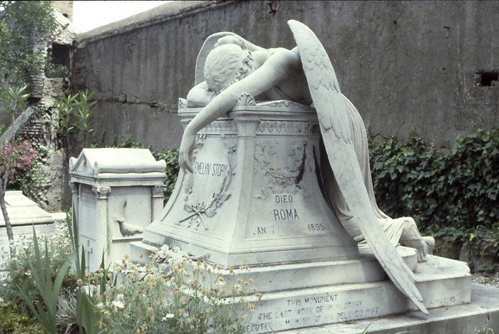 Este monumento se encuentra en el cementerio protestante de Roma, un lugar de reposo para la gente que no profesa la fe católica. Entre ellos se encuentran figuras muy conocidas, algunas ateas, que deseaban protestar contra los valores tradicionales de la sociedad.