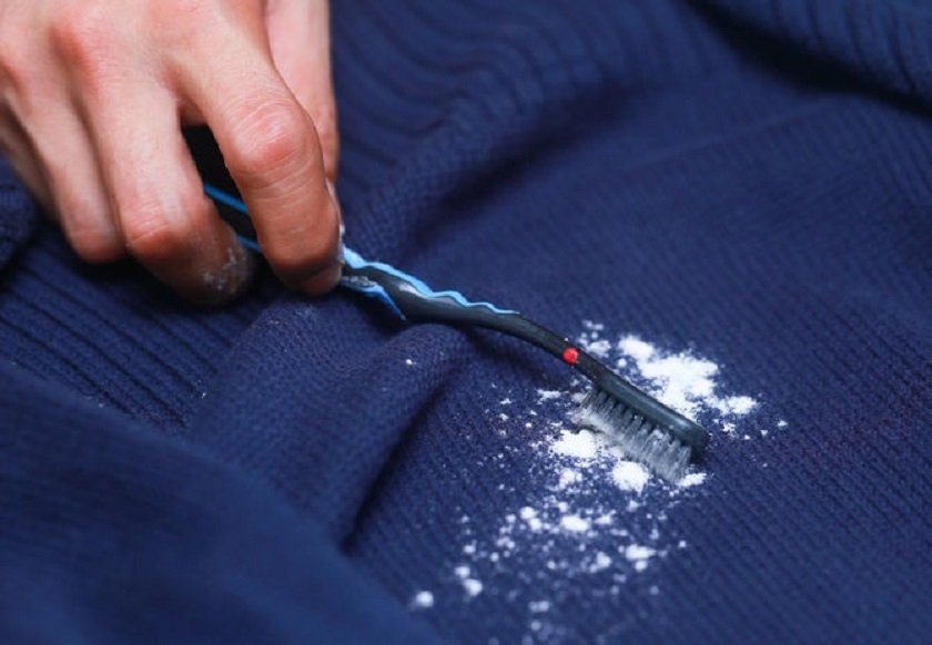 Y lo hace mejor que los medios especiales de limpieza en seco. Toma una bolsa de plástico y pon la prenda en que requiere limpieza. Vierte 2 tazas de almidón en el paquete. Ata el paquete y agítalo varias veces. Cuando el almidón se distribuya uniformemente sobre el tejido, deja la bolsa con ropa por toda la noche. Revisa las prendas al día siguiente: estarán limpias.