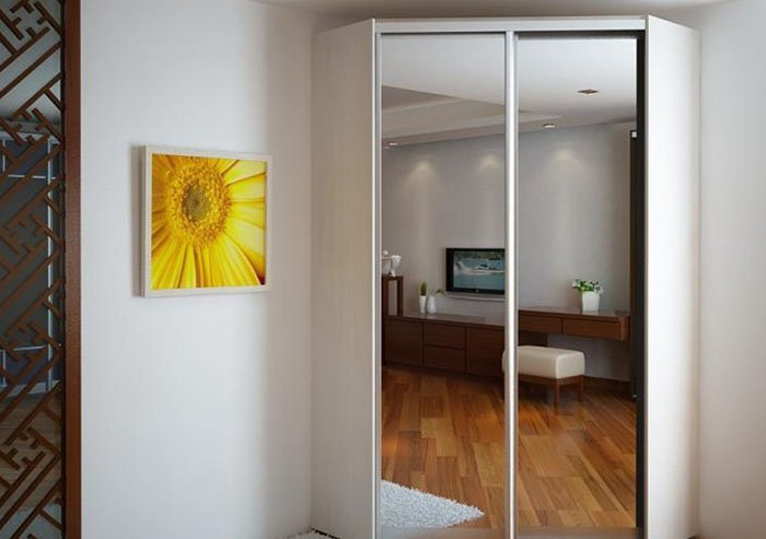 Con un armario de esquina, puedes lograr que el espacio de la habitación se aproveche de manera más eficiente. Después de todo, este elemento de interior ocupa un área mínima, es bastante espacioso, tiene un aspecto hermoso, y su hoja de corredera es sumamente cómoda.