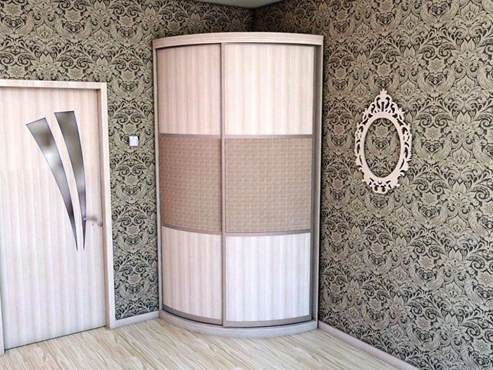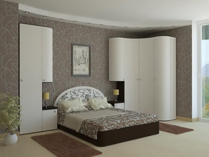 - Un armario de esquina de forma semicircular- es una solución excelente para un pequeño pero muy acogedor dormitorio.
