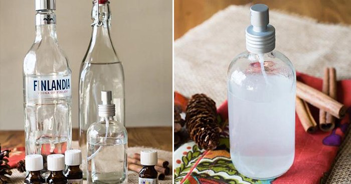 En una botella vacía con un aerosol (240 ml), vierte el vodka y una mezcla de aceites (aproximadamente 40 gotas). El volumen restante del vial debe llenarse con agua y mezclarse bien.