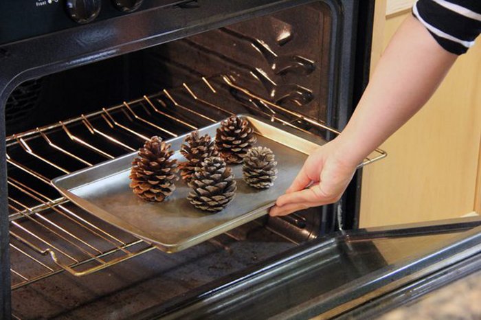 Los conos se lavan y secan en un horno a una temperatura de 200 grados, y se mantienen allí durante media hora.