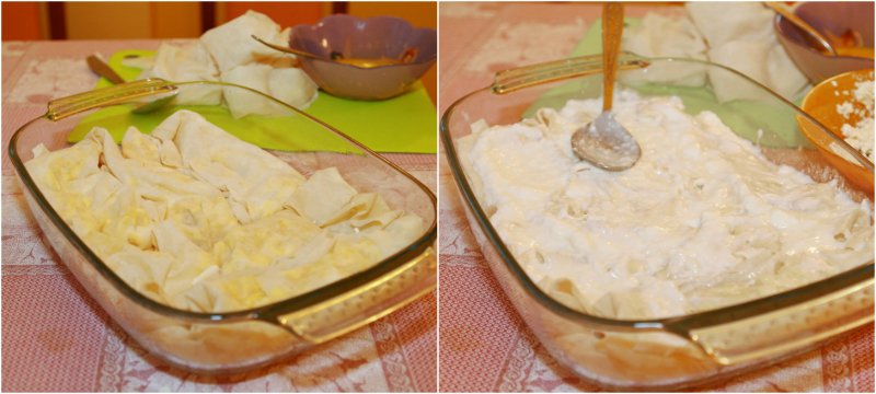 - Hornea la banitsa en el horno precalentado hasta 180ºC durante 30-35 minutos, hasta que se ponga dorada.