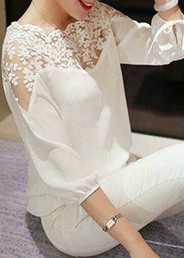 - Una blusa de encaje blanco se ve muy bien con un vestido de tirantes, pantalones vaqueros, una falda o pantalones de algodón.