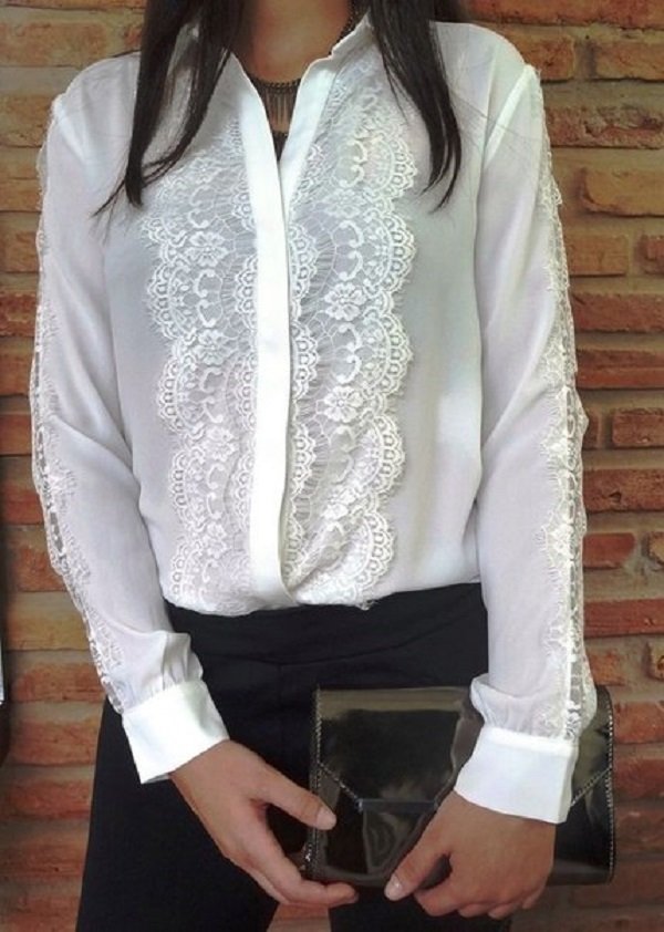 - Blusa estricta, de corte casi masculino… ¡Pero mira, cuánta belleza aportan los adornos de encaje!