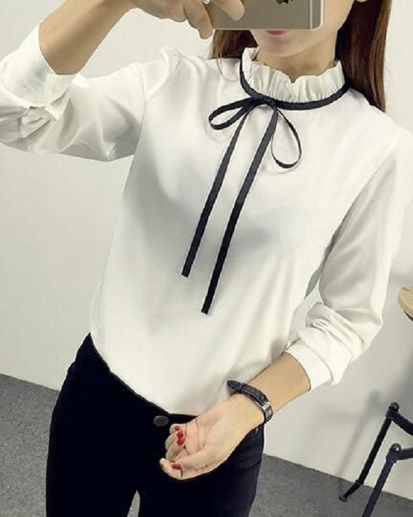 - Una blusa blanca con un lazo se puede usar en cualquier evento social, incluso con un estricto código de vestimenta. El lazo puede ser de seda o gasa.