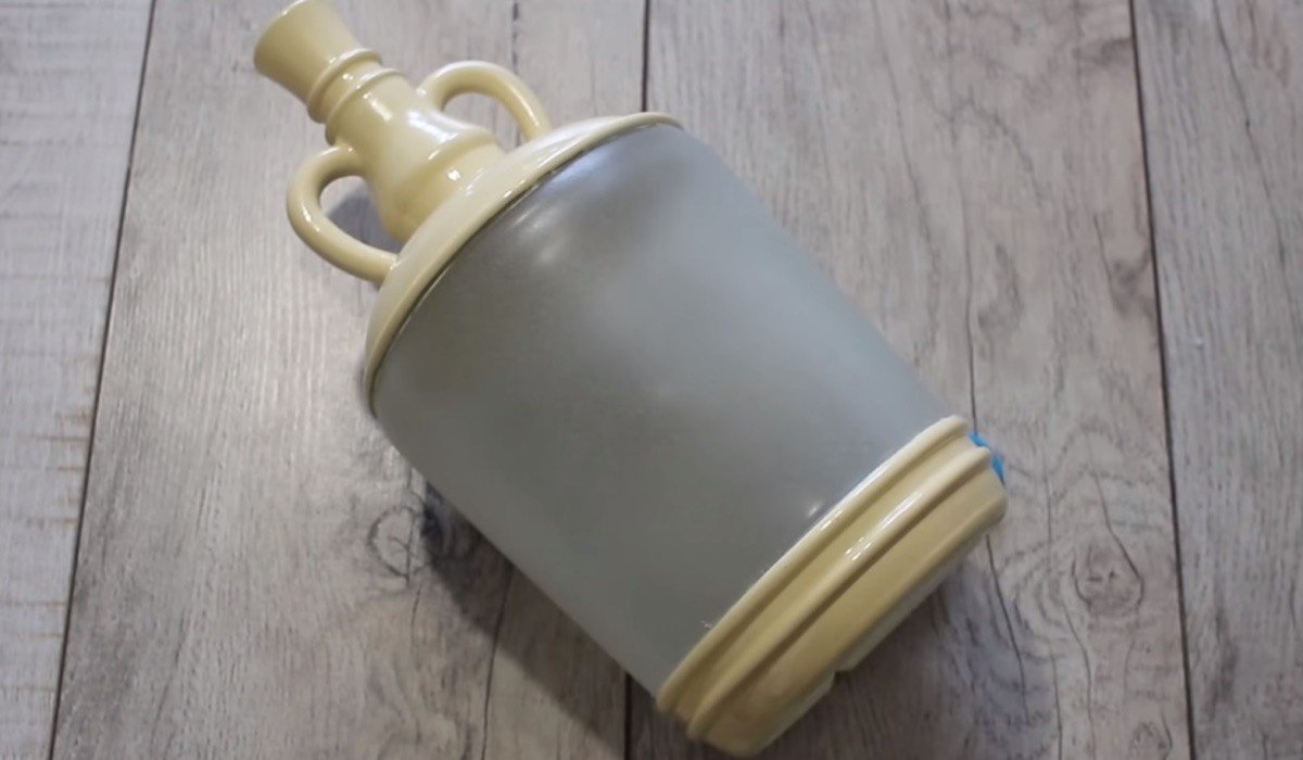 - Primero, enmascara el centro de la botella con cinta adhesiva (para no ensuciarla), y pinta la parte superior y la inferior de la botella. A continuación, retira la cinta adhesiva del centro y cubre la parte superior e inferior de la botella. Pinta el centro con pintura translúcida efecto cristal (aunque puedes elegir el color que quieras).