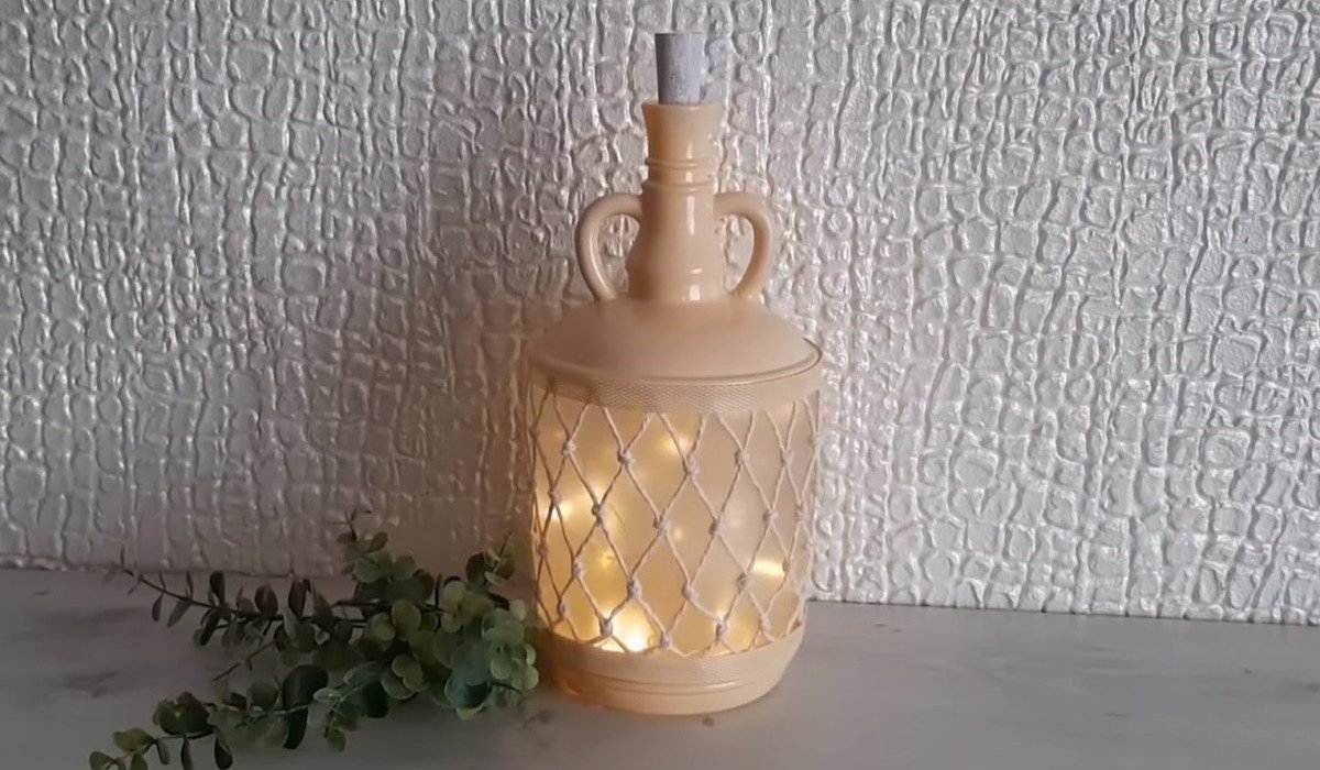 - Sólo queda pegar con cinta adhesiva la parte superior e inferior donde se sujetan las cuerdas (si fuera necesario) y coloca la guirnalda dentro. Una interesante lámpara casera está lista. Sólo tienes que elegir un lugar para ponerlo.
