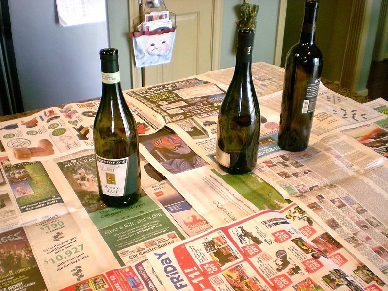 - Para preparar una botella, retira la etiqueta de la misma, para este propósito, es mejor usar alcohol o un medio para quitar el barniz.