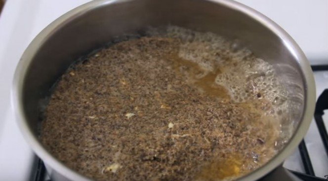 - Sin dejar de mezclar, añade la mezcla de café al agua hirviente y cuece la bebida durante 3 minutos.