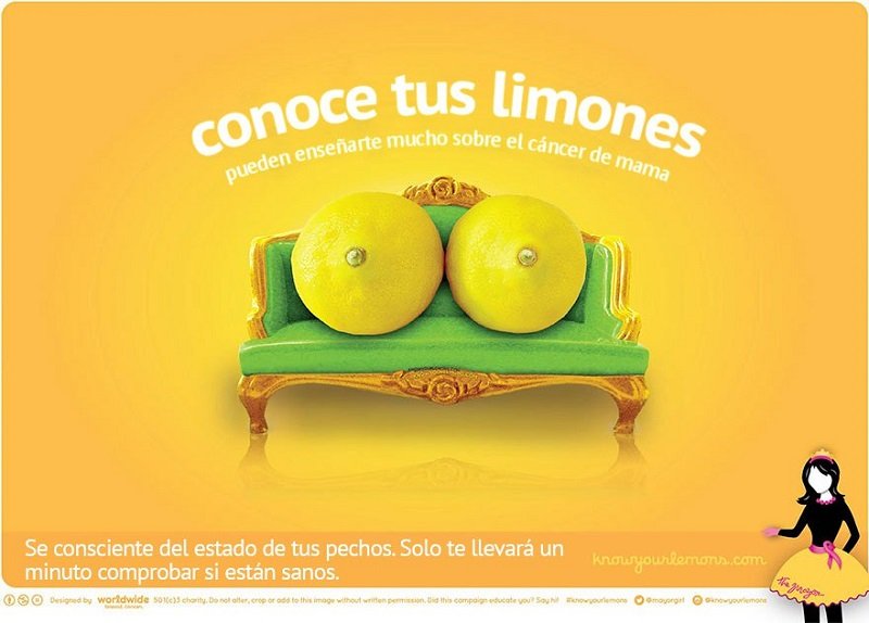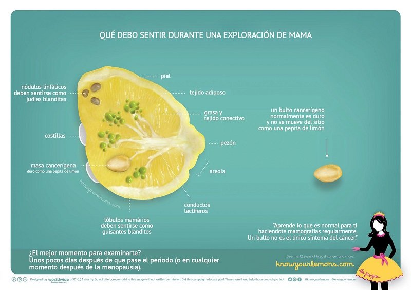 Como no existe ninguna política de censura por mostrar limones en las redes sociales, un símil entre pechos y limones es una muy buena opción para que las personas conozcan los pasos a seguir para detectar tempranamente el cáncer de pecho.
