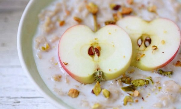 Es posible perder peso sin dañar el cuerpo, mientras recibe los nutrientes necesarios. Come avena con manzanas por la mañana. La fibra en la avena promueve el sistema digestivo y también mejora la condición del sistema vascular, lo que conduce a la salud del corazón. Y los flavonoides de una manzana fresca protegen el cuerpo de los radicales libres.
