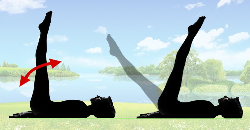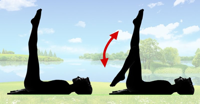 - Tome la posición inicial: acuéstate de espaldas y coloca los brazos a lo largo del cuerpo, las piernas elevadas y los dedos de los pies extendidos. Dobla ambas piernas en las rodillas y regresa a la posición inicial. Es necesario crear tensión en la parte frontal del muslo. Si es difícil, sostén el cuerpo con las manos. Haz 10 repeticiones.