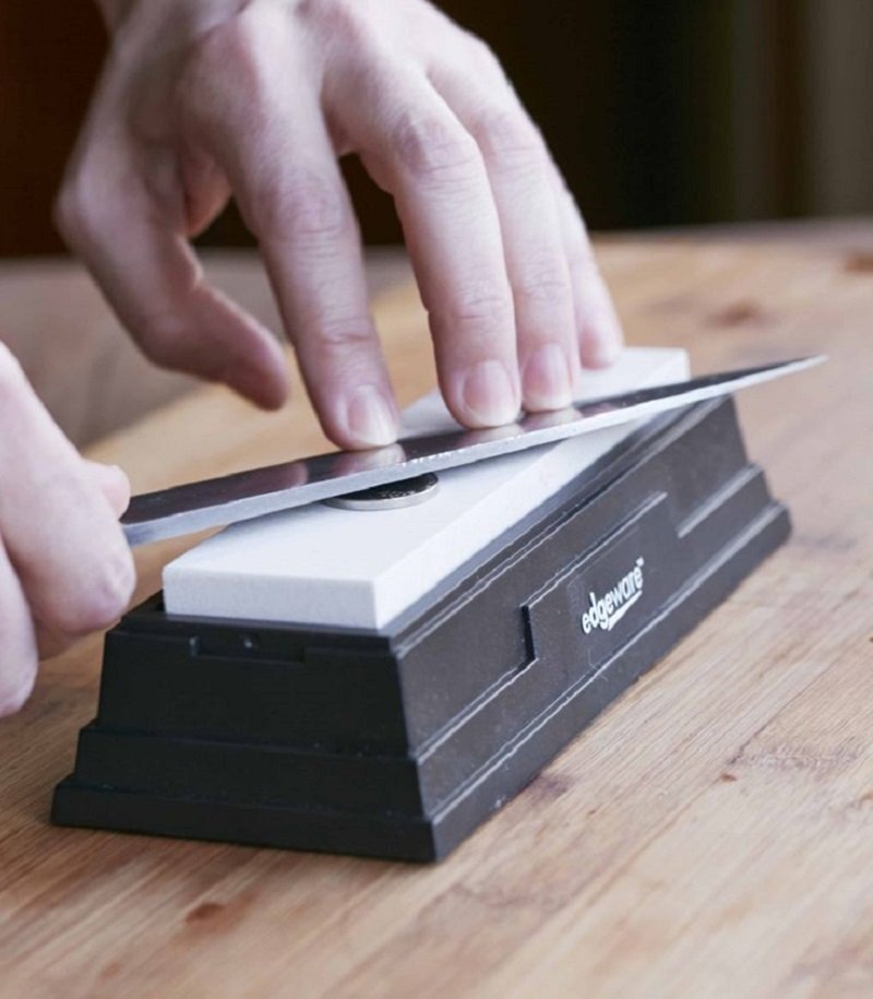 Esto es muy importante si tus cuchillos vienen afilados de fábrica. Pienses lo que pienses, en este caso también es necesario mantener el afilado con regularidad. Si determinas correctamente el ángulo del filo, no habrá ningún problema. Sólo tienes que atenerte a él. Afilar un cuchillo de este tipo te llevará mucho tiempo. Pero, cuanto más cuidadosamente actúes, menos daño causarás a la hoja.