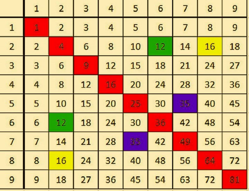 Pero esto no significa que la forma ordinaria de apreder multiplicación sea perjudicial. Simplemente no deja de ser una simple hoja de repaso . Para compararlo, puedes mostrarle a tu hijo que la tabla pitagórica da los mismos resultados, pero también se puede jugar con ella.