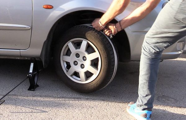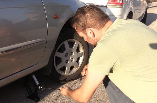 - Usa el gato hidráulico para levantar una de las ruedas motrices (dependiendo de la trasmisión de la máquina) y bloquea la rueda en esta posición.