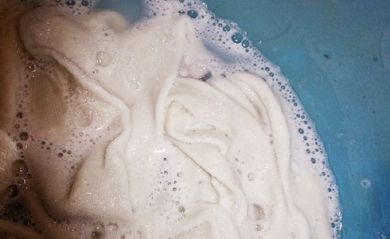 - Agrega aceite de girasol y lejía seca al agua hirviendo, así como también detergente en polvo.
