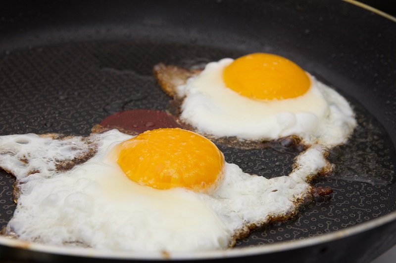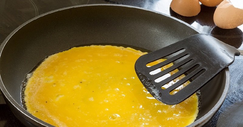 Es mejor cocinar huevos fritos en una sartén con una capa antiadherente. Incluso hay sartenes especiales para cocinar huevos revueltos y tortillas.