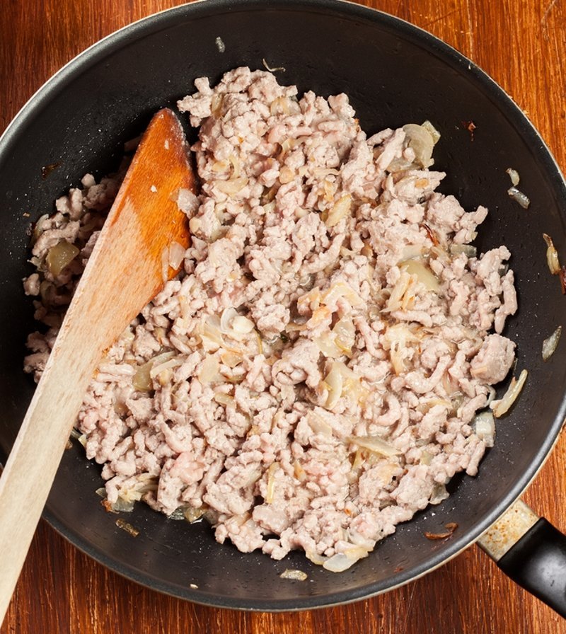 © Depositphotos - Luego, agrega la carne picada a la cebolla y deja que hierva a fuego lento.