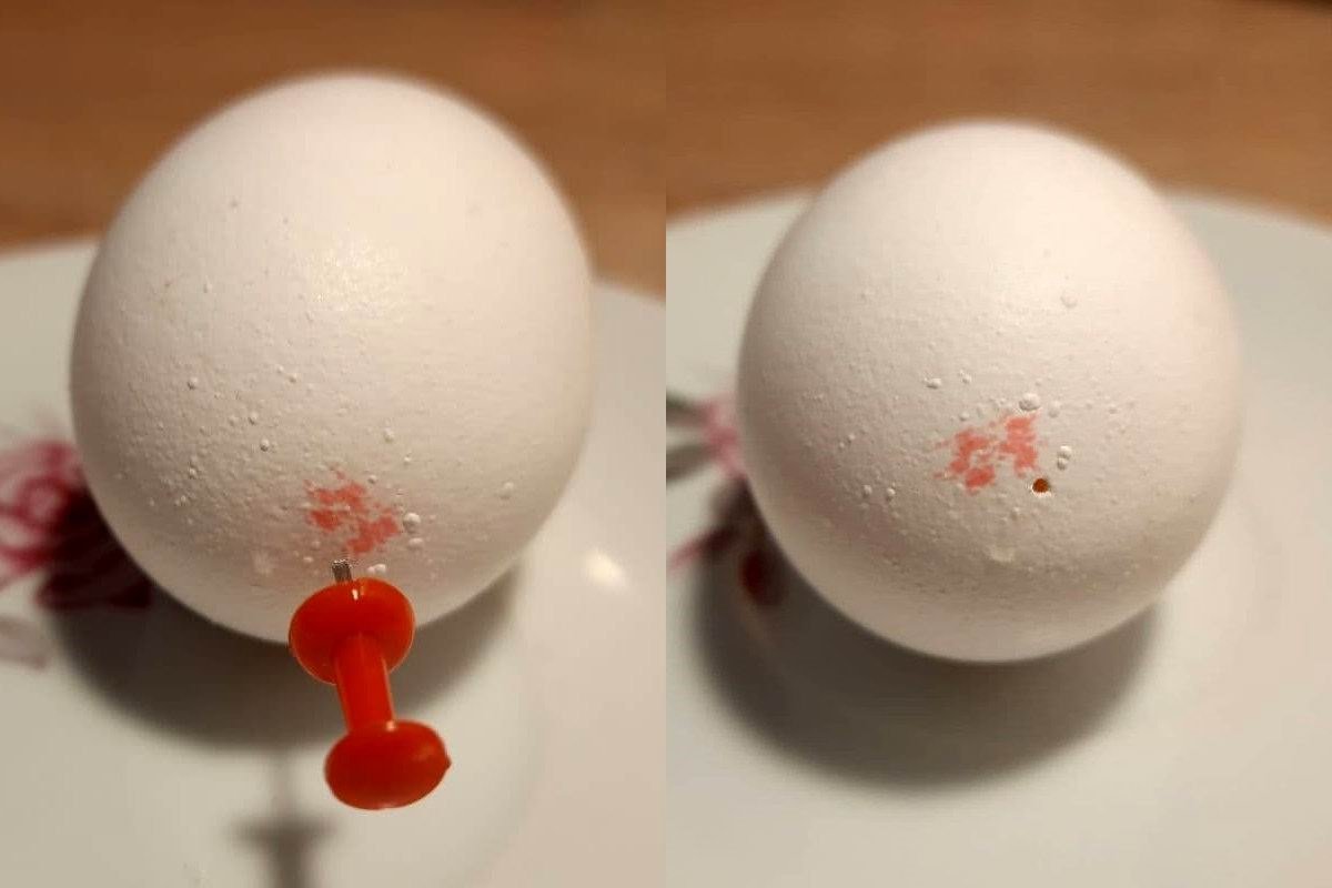 © Depositphotos - Haz un pequeño pinchazo en la parte redondeada del huevo (no más de 5 mm) con una aguja, alfiler o botón. No te preocupes, nada saldrá del huevo: hay un espacio vacío en la parte redonda que protegerá el contenido.