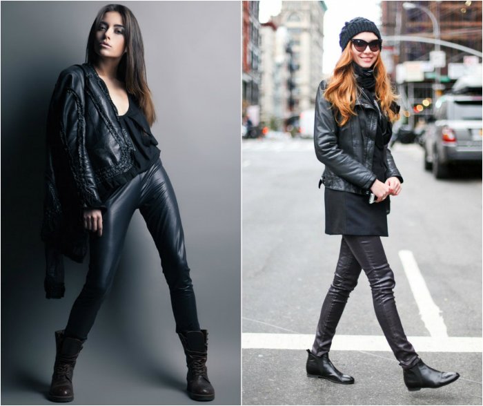 5. La parte superior corta y leggins en lugar de pantalones. Los leggins son extraordinariamente cómodos para el uso cotidiano. Sirven para crear las combinaciones distintas, pero en compañía con ellos más vale escoger una camisa larga o una túnica.