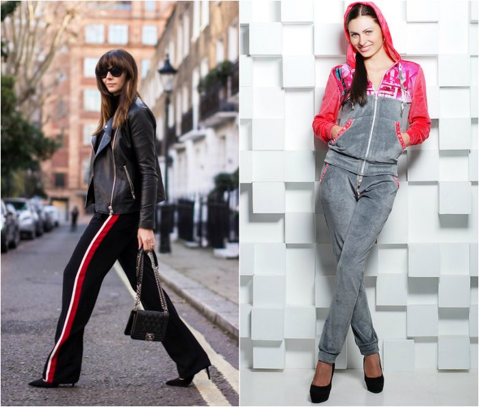 4. El pantalón deportivo y las balerinas . Ohh…¡Es una categoría especial de las jovencitas a la moda, que ha engendrado la tendencia de los últimos años — mezclar ropa deportiva con vestimentas clásicas… Tal vez sobre el podio, este conjunto, pensado hasta el último detalle, se vea bien, pero los pantalones sport y los zapatos clásicos — definitivamente no hacen un par!
