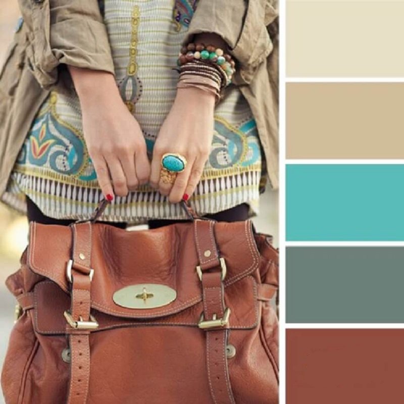 - Los colores turquesa con un marrón de fondo se ven muy bien. Puedes combinarte con ropa de tonos marrones, y un accesorio de color turquesa.