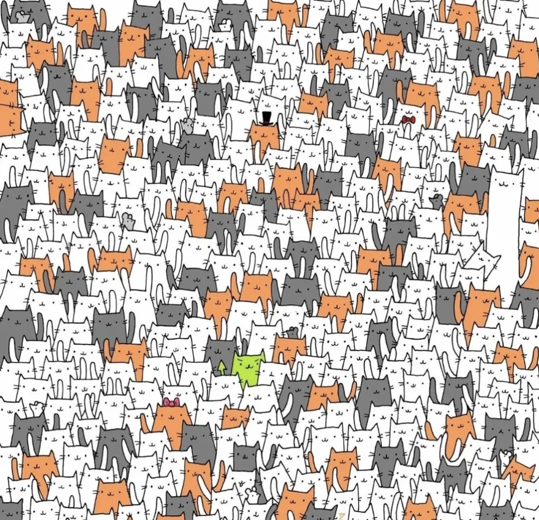 - Para ponerte a tono con una tarea más difícil, te proponemos resolver algunas tareas sencillas, pero fascinantes. Se trata de una especie de mini-ejercicio. Aquí lo primero que necesitas es encontrar la imagen de un conejo. La dificultad es que el conejo es sólo uno, entre un montón de diferentes gatos e incluso ratones. Y, sin embargo, aquí está presente.