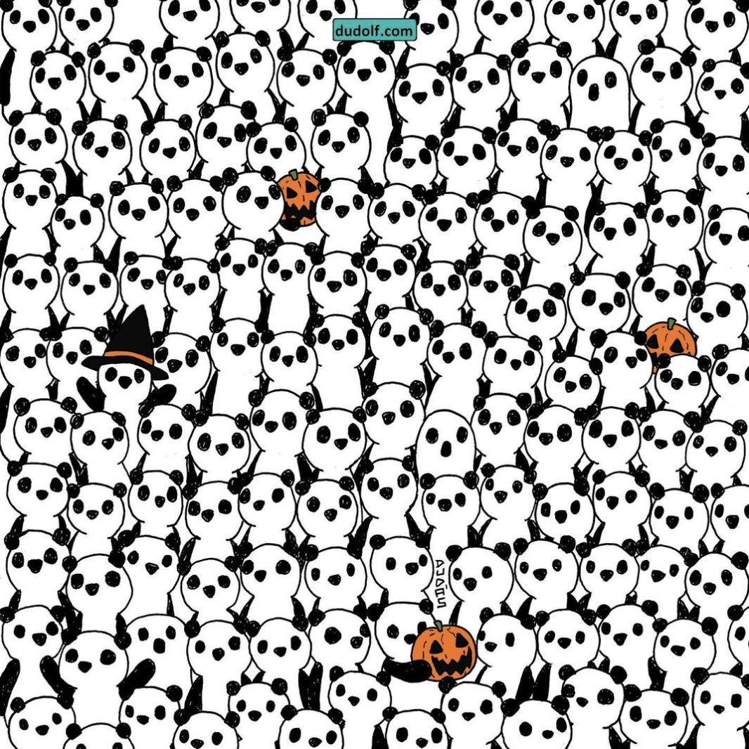 - La segunda tarea será aún más difícil, porque aquí hay que encontrar tres objetos diferentes. Los autores de la tarea afirman que hay tres fantasmas ocultos en la imagen entre los muchos pandas lindos. Encontrar cada uno de ellos no es tan fácil. ¿Podrás hacerlo?