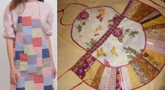 - Un delantal hecho con la técnica de patchwork resulta inusual y original, pero su fabricación requiere ciertas habilidades de costura.