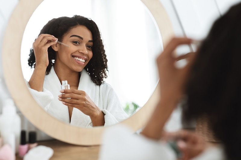 En los comerciales, vemos cómo las chicas hablan con entusiasmo sobre las propiedades «mágicas» de un suero en particular y luego lo aplican con una pipeta (tocándose la cara). Hacerlo es fundamentalmente incorrecto. Se debe minimizar cualquier contacto de los productos cosméticos con la piel. Después de todo, cada persona tiene su propio microbioma con una gran cantidad de bacterias. Por lo tanto, aplícate el producto con un dosificador para no volver a tocar la piel. Por ejemplo, simplemente pon tu producto de belleza en tus manos limpias o en las protuberancias de tu cara.
