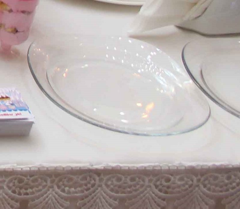 - Haz esto con todos los elementos del servicio, y déjalos secar durante unas horas. Luego, levanta los platos, y colócalos sobre un frasco o un vaso.