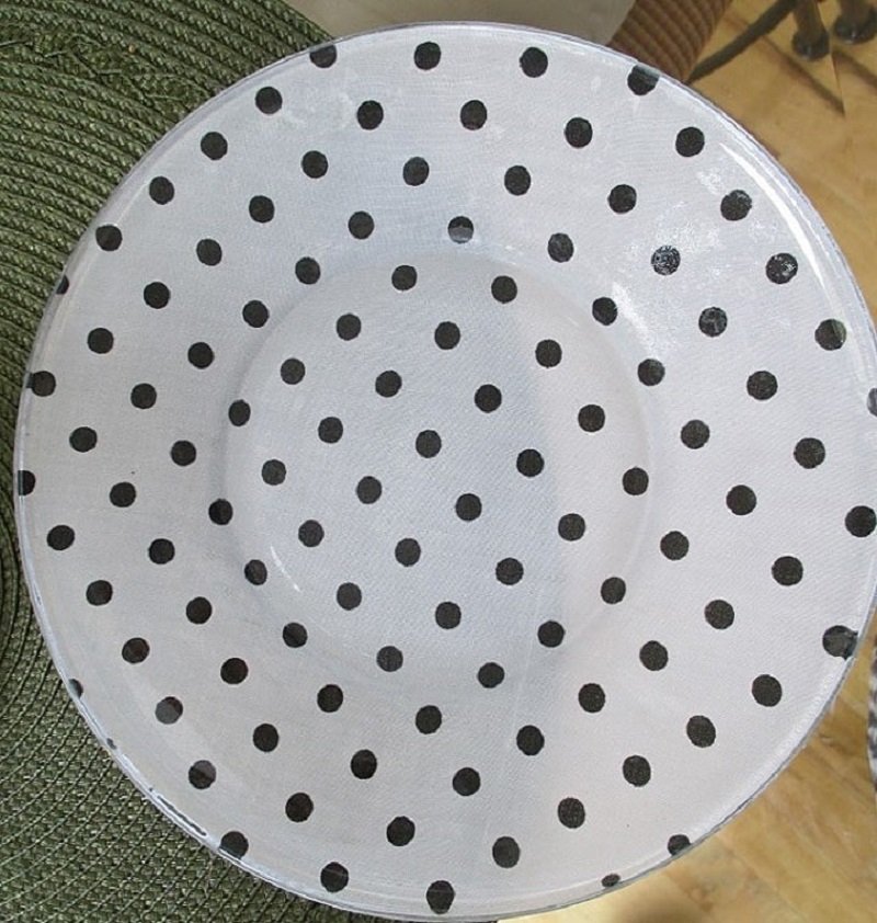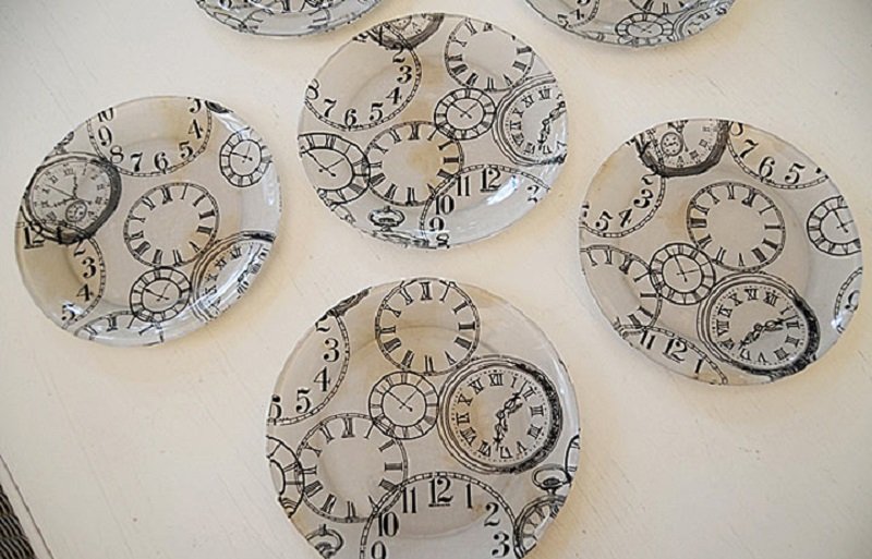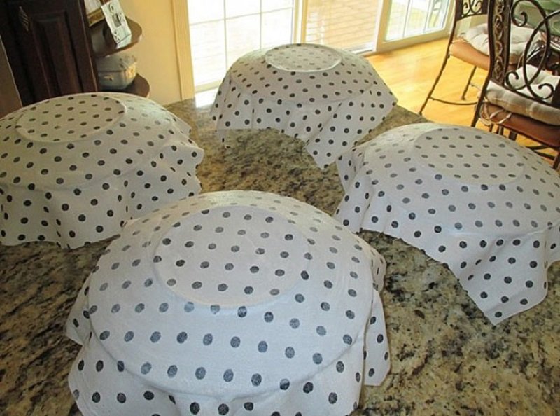 - Para asegurarte que el tejido no se despegue, y cambie su estructura cuando se exponga al agua, aplica un sellador transparente sobre la superficie. Después de eso, el conjunto de platos estará listo para su uso frecuente.