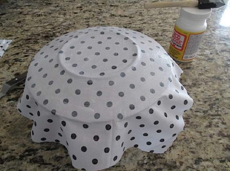 - Usando el pegamento, pega la tela a la parte posterior del plato.