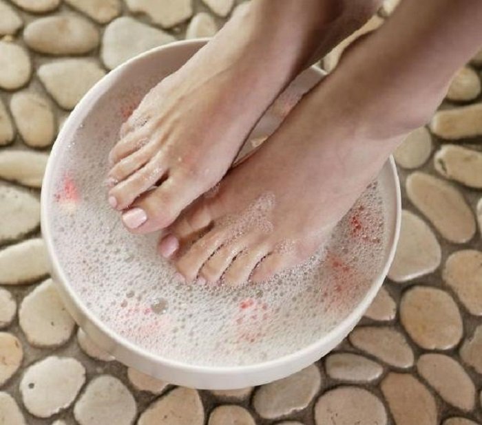 - Introduce tus pies en el recipiente, para que permanezcan remojados por espacio de una media hora.