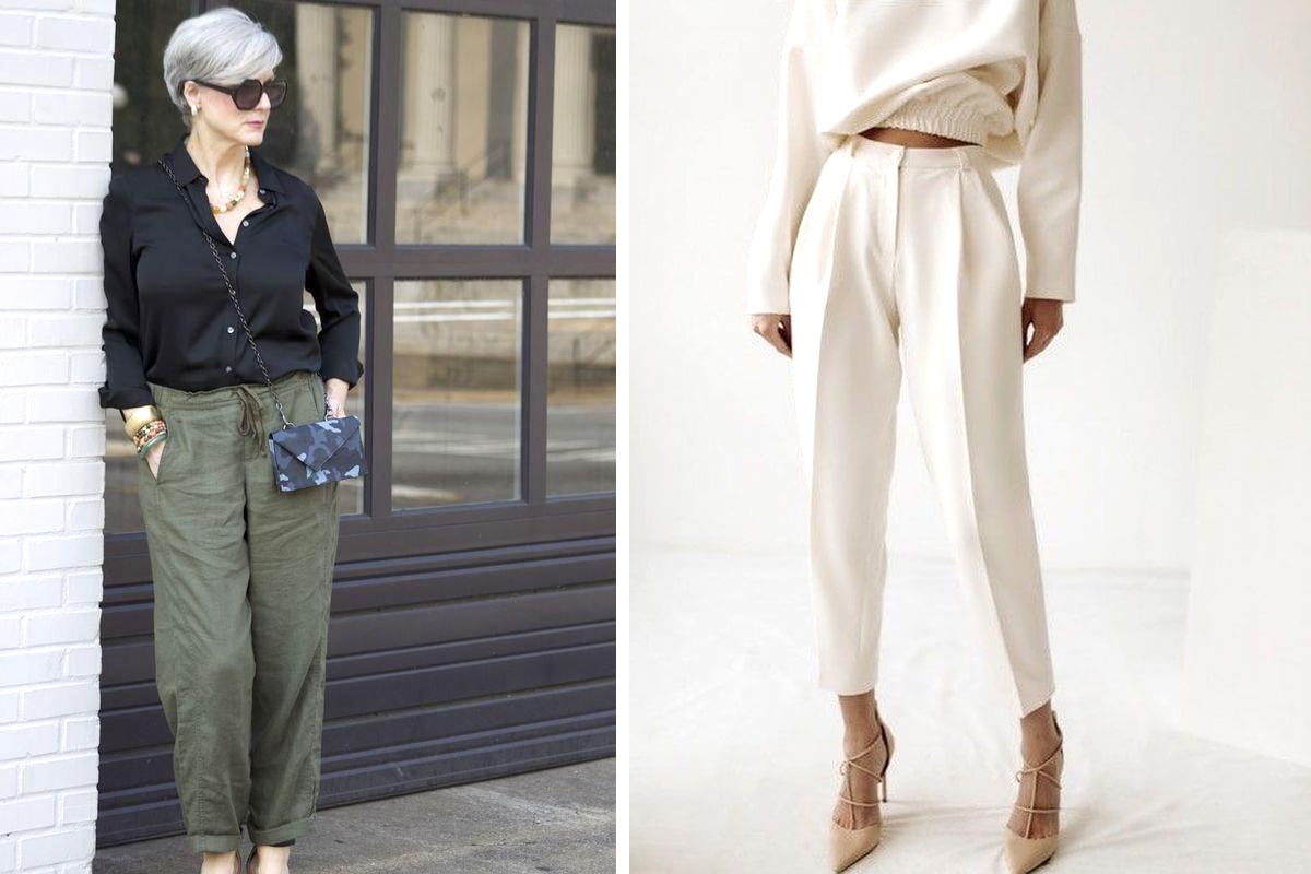 En ese caso, presta atención a los pantalones carrot, porque te ayudarán a hacer las caderas visualmente más anchas, y los hombros más estrechos.