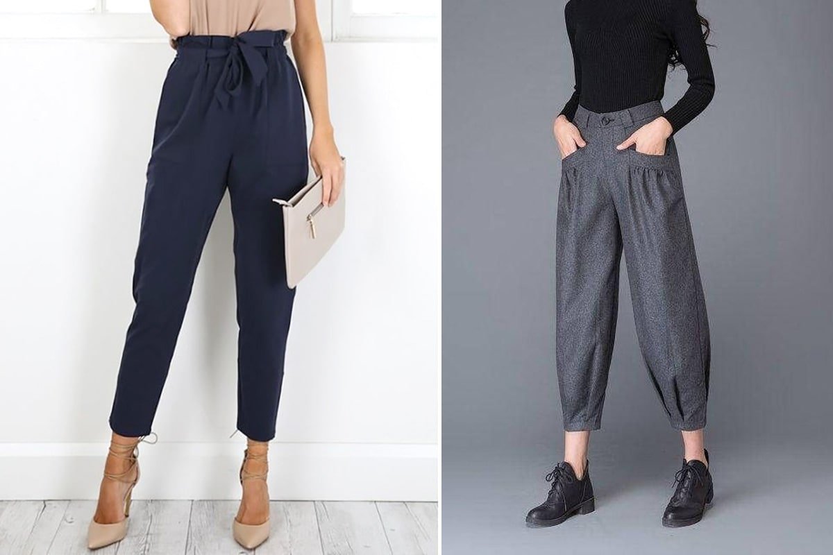 Otro tipo de pantalones, que son sueltos alrededor de las caderas, se estrechan hacia abajo y justo por encima de los tobillos. A menudo se ve con la cintura asimétrica.
