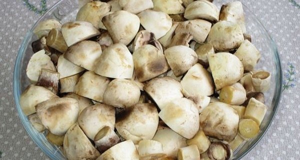 - Los champiñones frescos deben ser de color blanco o ligeramente parduzco. Si los notas un poco ennegrecidos, entonces ya están demasiado maduros. Aunque estas setas demasiado maduras no son dañinas para el cuerpo humano, al cocinarlas, quedan muy duras y no son sabrosas.