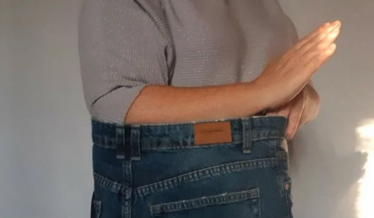 - Desliza tu mano dentro de tus jeans, de modo que tu codo esté en un lado de tu cintura y tu palma en el otro.