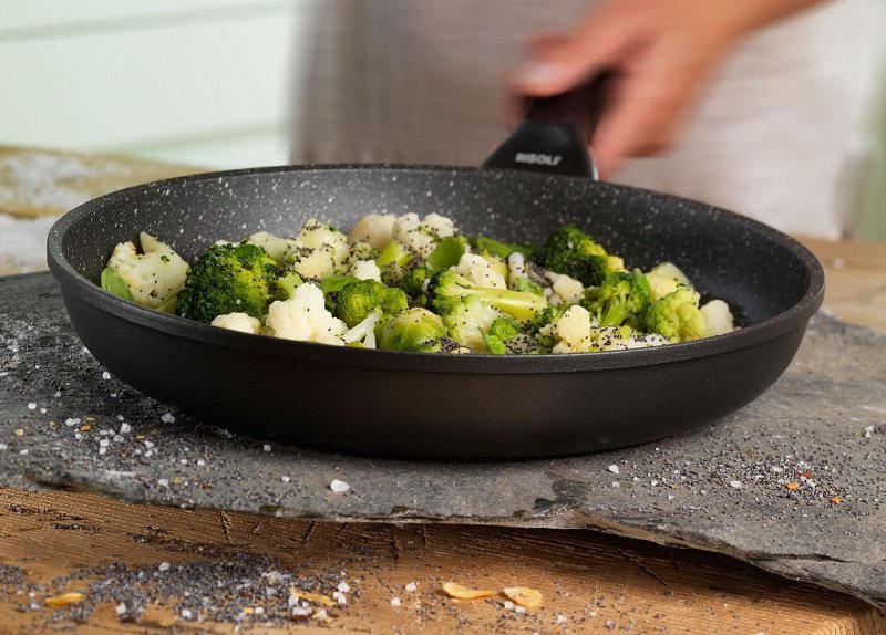 La sartén de cerámica es famosa por su utilidad. En primer lugar, es ideal para los platos dietéticos, ya que requiere un mínimo de aceite. En segundo lugar, la cerámica es absolutamente segura para la salud. Además, no se deforma por la alta temperatura ni se raya.