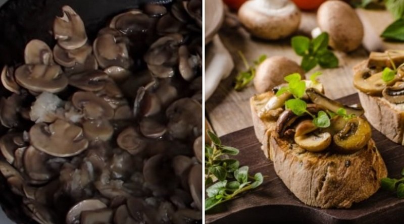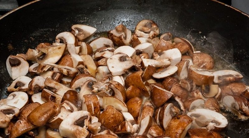 Por desgracia, mientras cocinaba, no tuve tiempo de tomar una foto de los champiñones en la sartén, así que tomé una ya preparada de Internet. La próxima vez intentaré corregir esto y filmar todo el proceso.