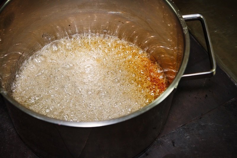 - Vierte el azúcar en una cacerola y cúbrela con agua. Pon todo a fuego alto, deja que hierva el agua.