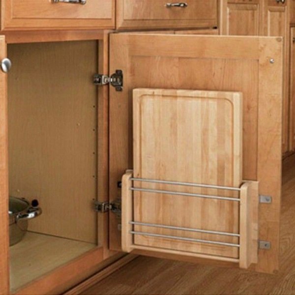 Para asegurarte de que este requerido utensilio no ocupe mucho espacio, puedes colocar un pequeño estante en el interior de cualquier puerta de armario. Es realmente provechoso.