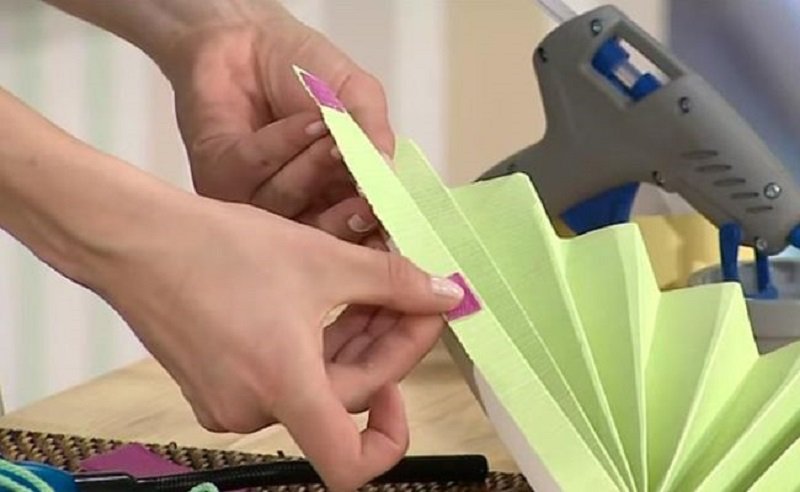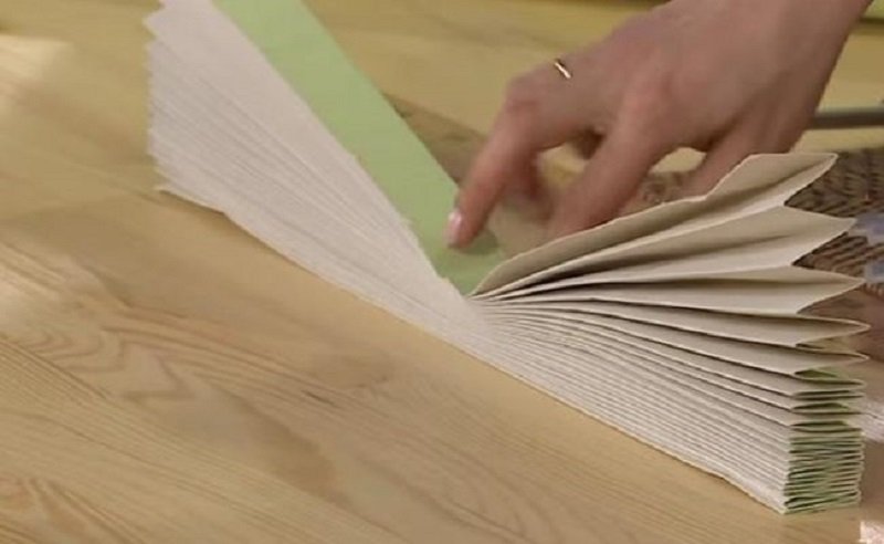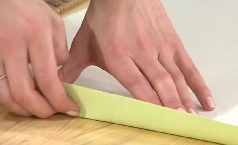 - Dibuja unas líneas en forma de persianas. Usa un lápiz y una regla para hacer la marca cada 2-3 centímetros. Dobla la primera línea debajo de la línea. Utiliza un lápiz para alisar cuidadosamente la tapa.