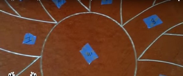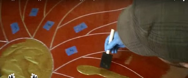 - Luego crearon el bosquejo de dibujo en el piso y lo «definieron» con la ayuda de una lijadora.